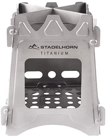 The Stadelhorn Titanium Wood Stove is a foldable cooking application that uses wood as its heat source. This stove is super lightweight and takes up very little room in a backpack. Once unfolded and fully assembled, small pieces of wood are loaded into the hole in the underside of the stove and lit to create a small controlled fire. On the top of this stove is a small cross-section of titanium that will support a pot or pan stably above the flame.