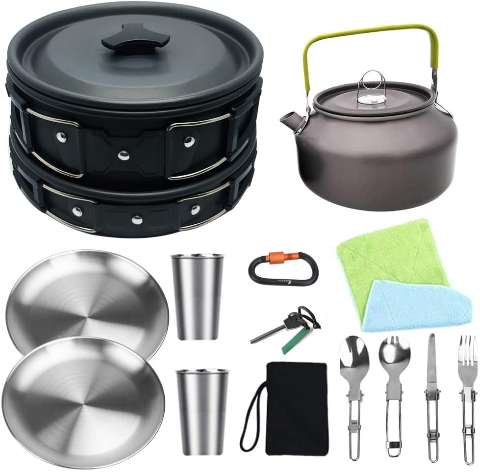 The Bisgear Outdoor Cookware Kit is a full survival cook set for use on a gas stove. This budget set comes with everything you need to cook with gas, including the stovetop. You get a lightweight frying pan, boiling pot, cutlery set, cooking utensils, and cleaning kit that packs away in a compact drawstring bag. This is the perfect kit for the backpacker that needs a complete cook set that doesn’t weigh too much or take up valuable space. The only additional purchase you will need for this kit is the gas to power the stove.